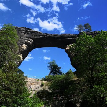 Podnikněte s námi výpravu na ikonickou Pravčickou bránu mezi pískovcové skály a romantické skalní vyhlídky, během níž prozkoumáme i jeskynní převis a projedeme se na lodičkách kolem pískovcových soch s vtipným komentářem převozníka.