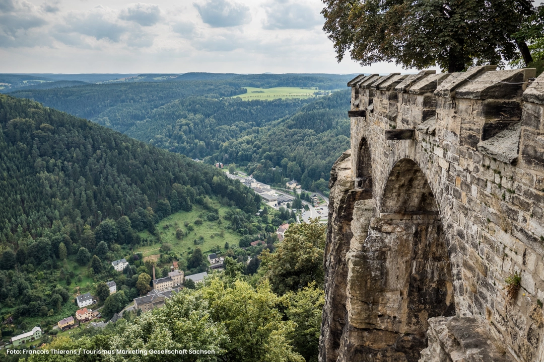 dolyZ pevnosti tyčící se nad levým břehem Labe je překrásný výhled na jeho impozantní údolí, unikátní stolové hory a vůbec na velkou část úchvatného Saského Švýcarska.