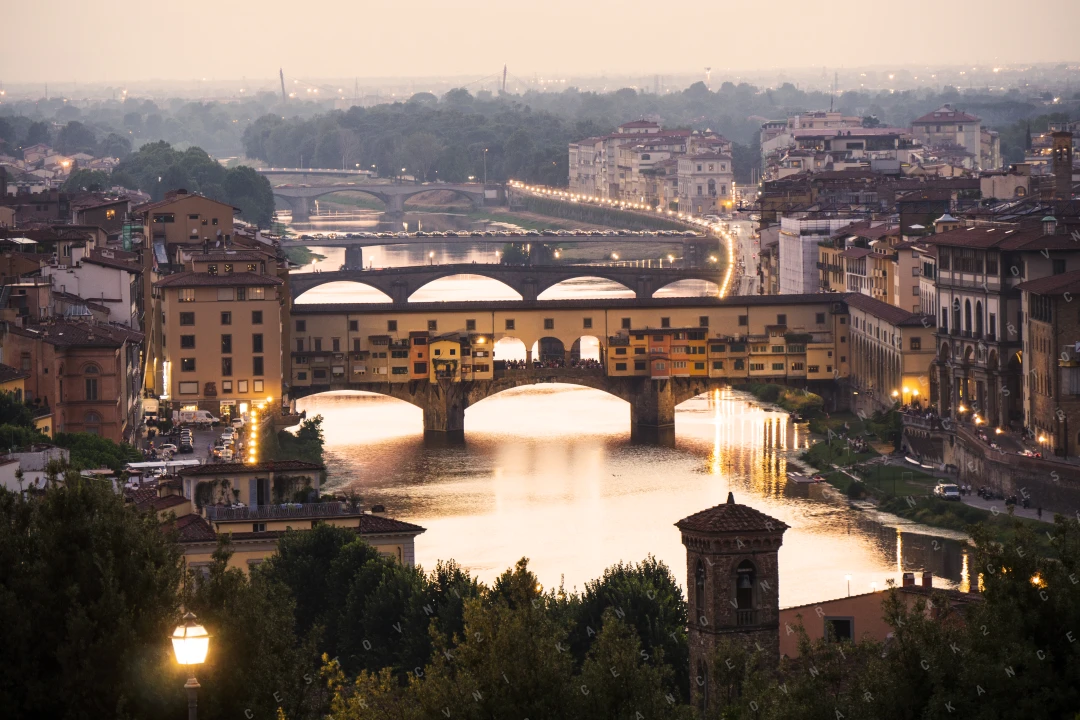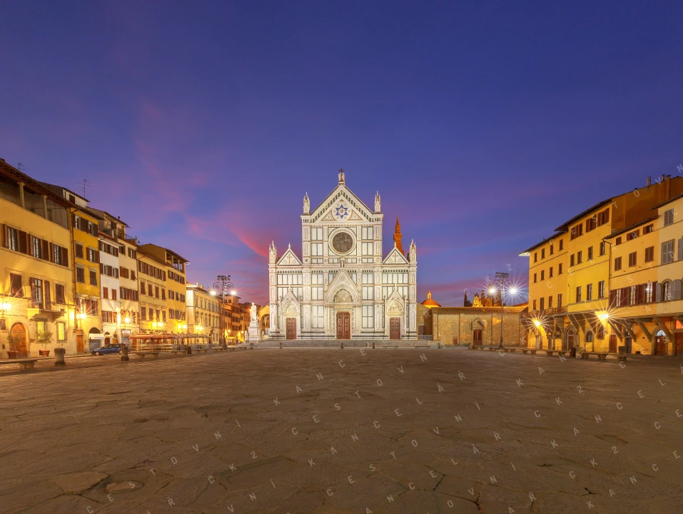 Na Piazza del Duomo budeme obdivovat velkolepou katedrálu Santa Maria del Fiore, dominantu města se slavnou kopulí Brunelleschiho. Na Piazza della Signoria spatříme Palazzo Vecchio i kopii Michelangelova Davida – symbol florentského umění. Řeku Arno překročíme po legendárním Ponte Vecchio, „Mostě zlatníků“, kde dodnes září výlohy klenotnictví. Zavítáme i k bazilice Santa Croce s byzantskými prvky a ke slavné galerii Uffizi, pýše renesančního umění.